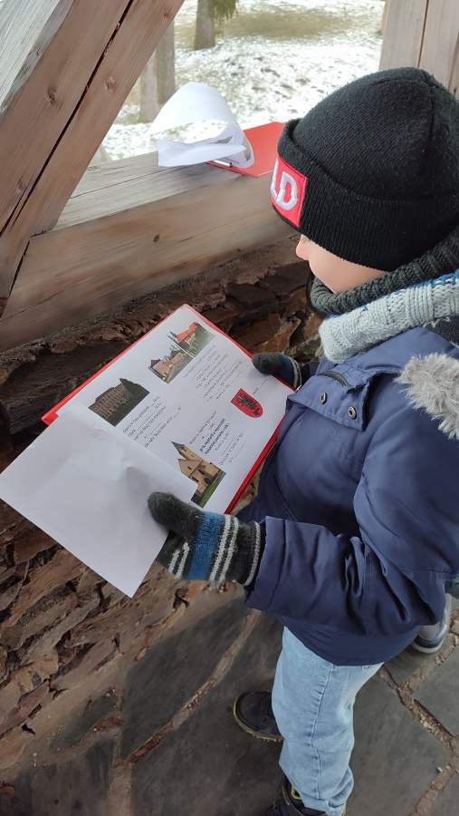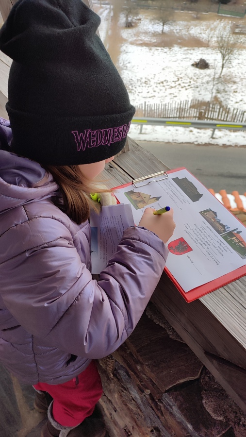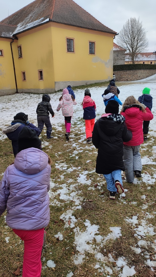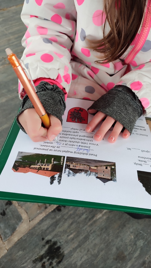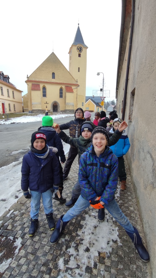Samozřejmě jsme také vyrazli ven a zjišťovali jsme, jaké staré budovy jsou ve Zbraslavicích. Pracovali jsme ve skupinkách, zjišťovali jsme historické informace a doplňovali jsme pracovní listy.