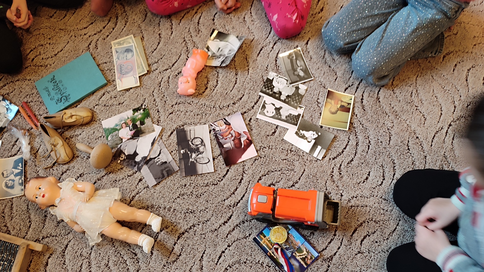 Vytvořili jsme anketu a u rodičů a prarodičů jsme zjišťovali, jak se jim žilo dřívě, co kdysi neměli a nechybělo jim a naopak, co dnes nemáme a potřebovali bychom. Do školy jsme si přinesli staré předměty - hračky, fotografie, bankovky, valchu apod. O předmětech jsme si povídali, tipovali jsme, k čemu sloužili, co místo nich používáme dnes, jak jsou staré atd.