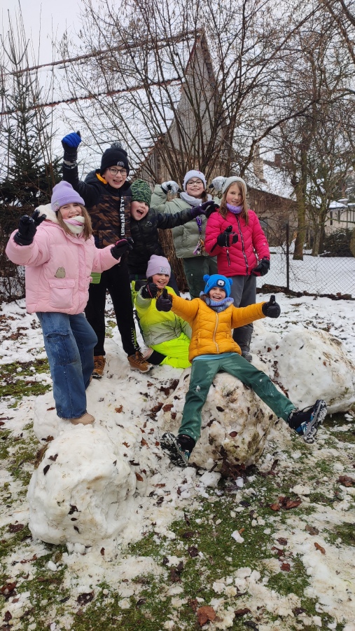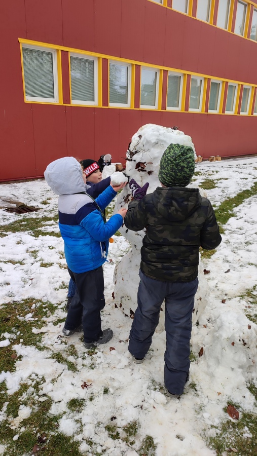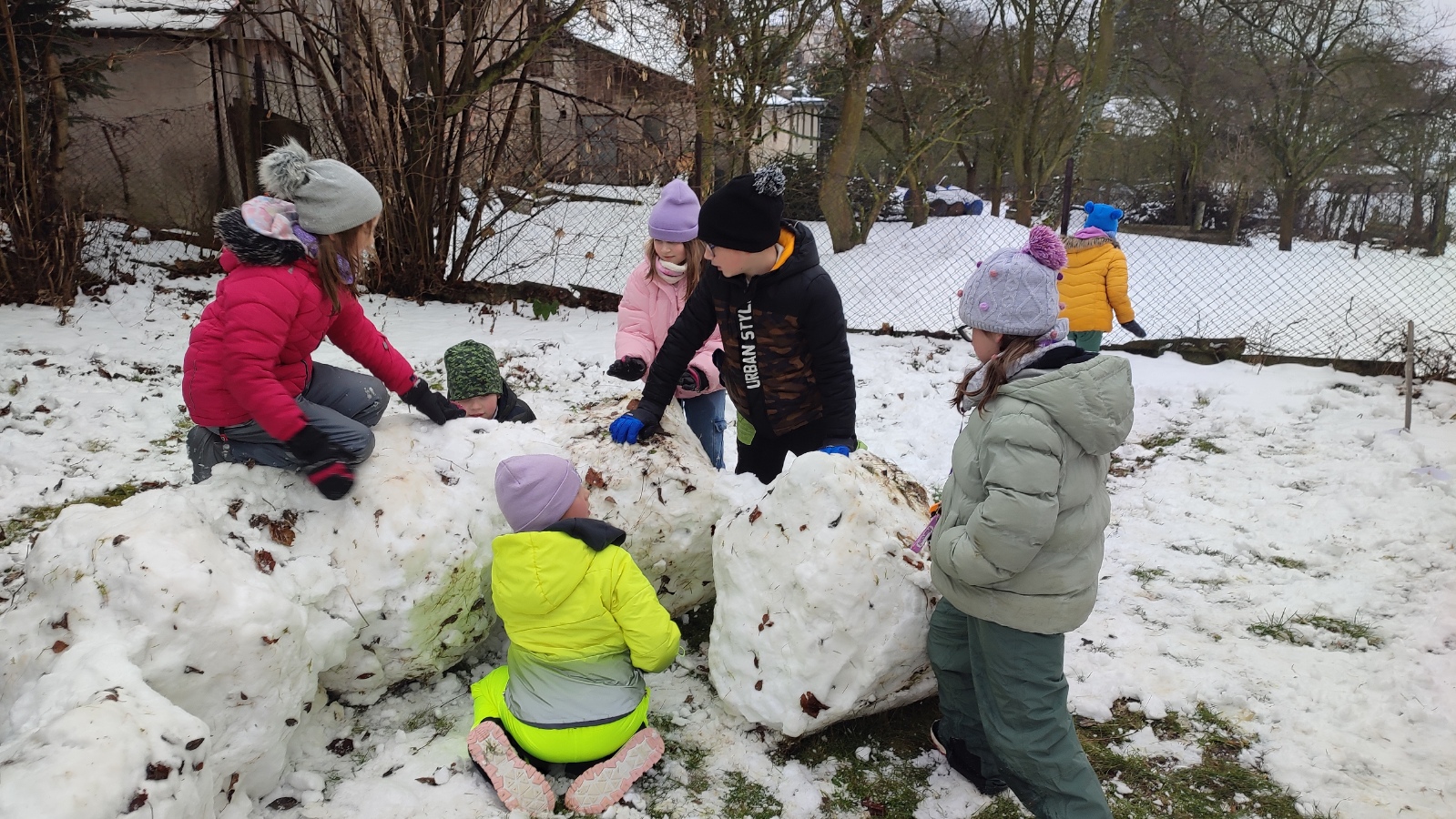 Samozřejmostí pak byli sněhuláci a výroba sněhového nábytku. Snad nikomu se nechtělo na oběd a budeme doufat, že ještě nasněží, abychom se mohli k naší sněhové galerii vrátit.