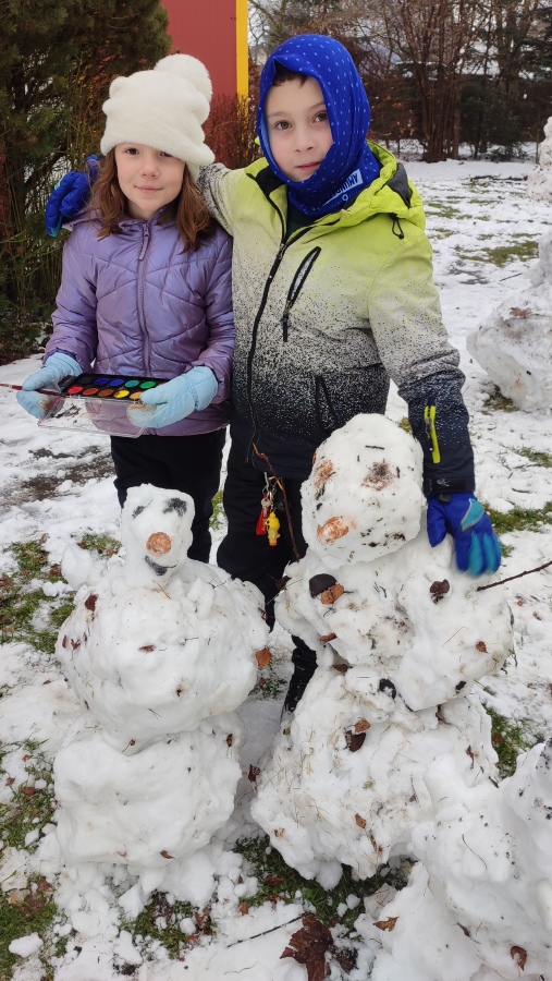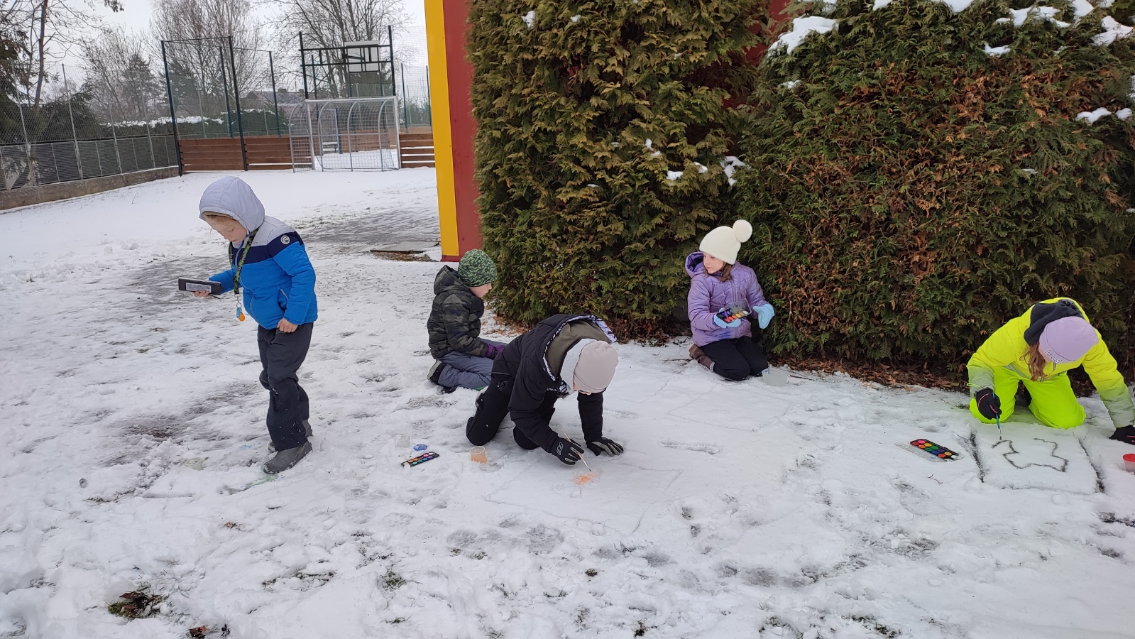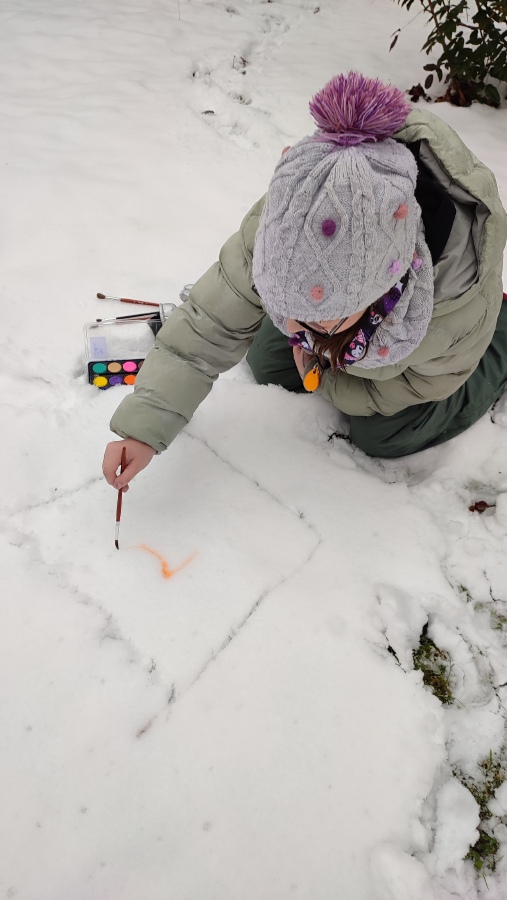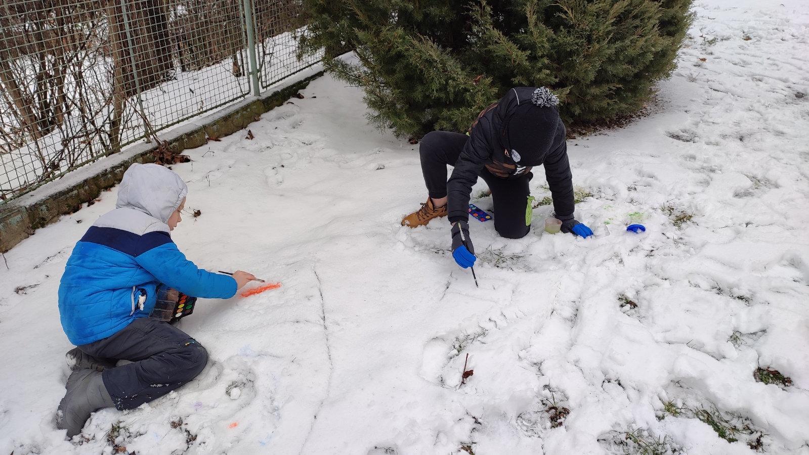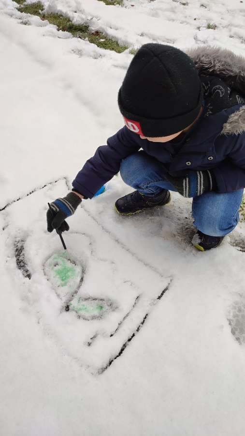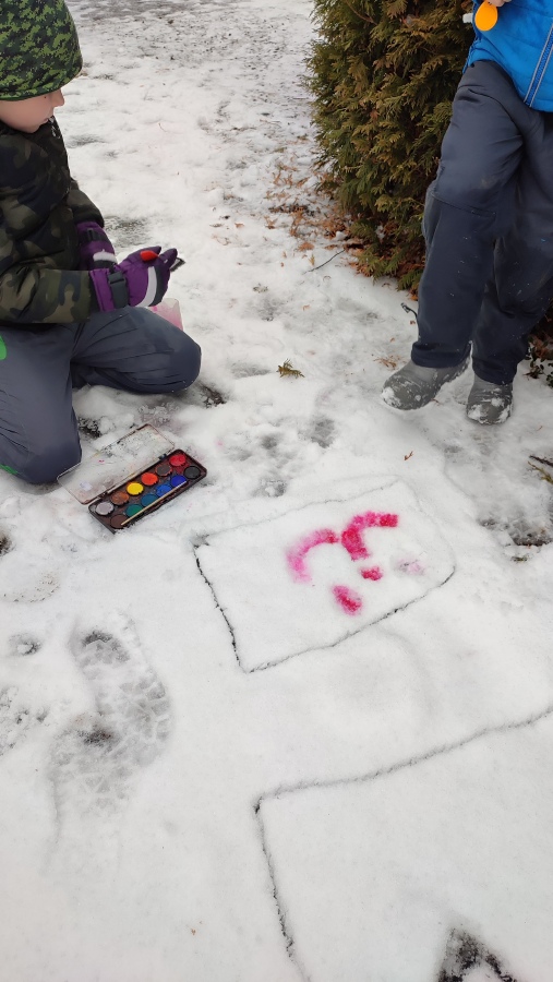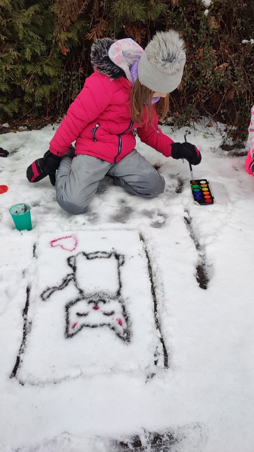 Zima, mrzne, na pár dní napadl sníh a děti se chtějí učit venku. Sníh, voda a barvy, to jde přeci skvěle dohromady. Proto jsme opět vyrazili ven za novými zážitky a zkušenostmi.