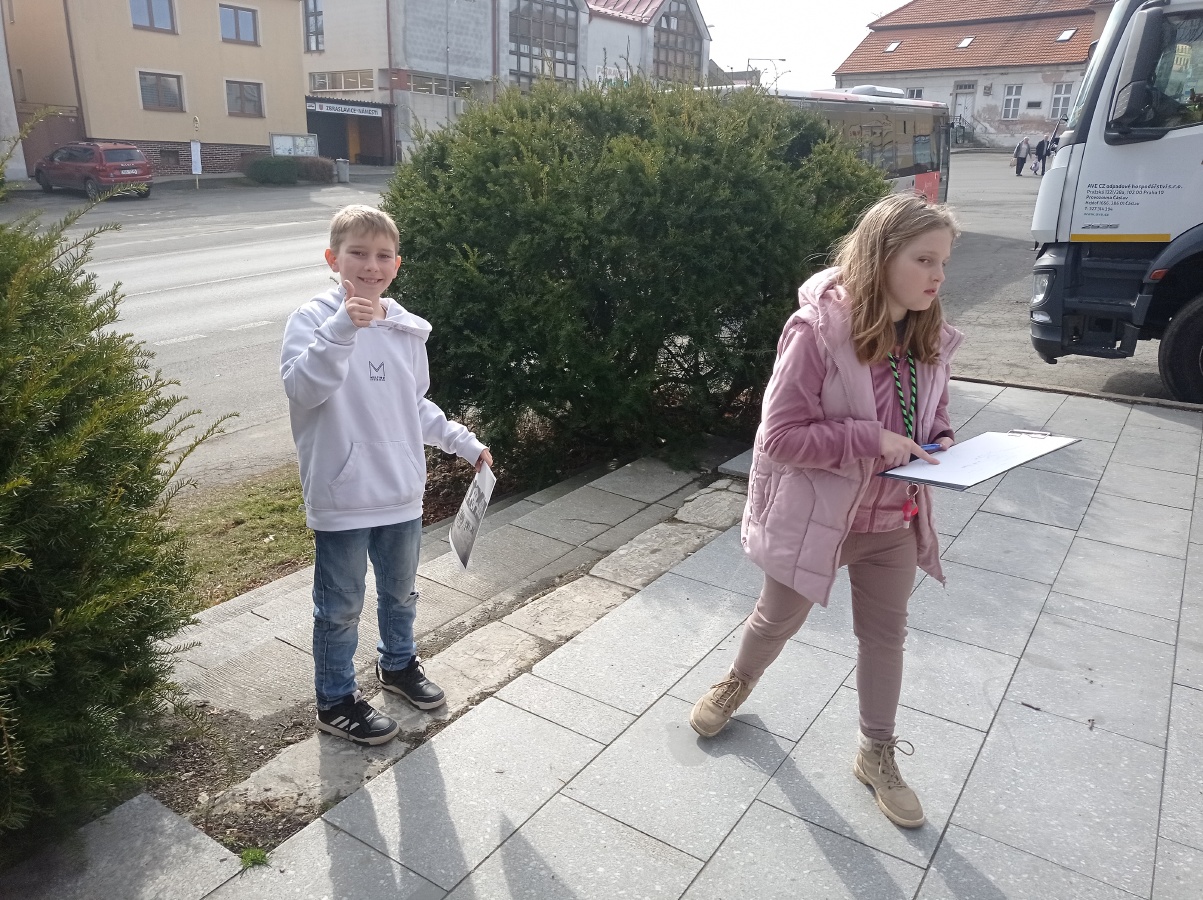 Obě výpravy měly stanoviště na náměstí. Poprvé bylo krásné jarní počasí, podruhé se naopak zima ještě nechtěla vzdát své vlády a teplotou lehce nad 0° to dávala jasně najevo. Tentokrát jsme se ale poučili a pořádně se oblékli. Ve skupinách jsme bádali a zjišťovali pracovní doby různých služeb na náměstí a v blízkém okolí...