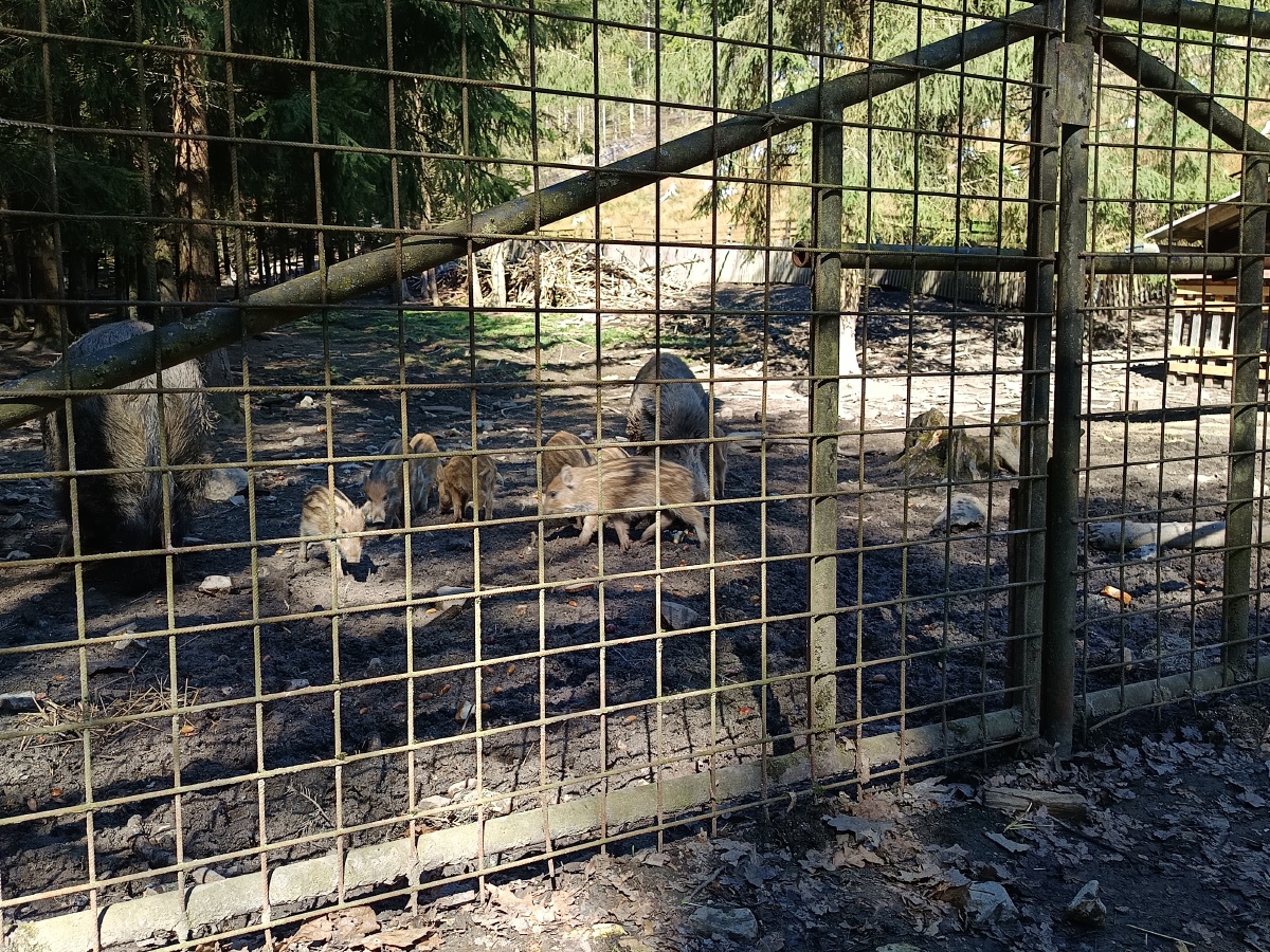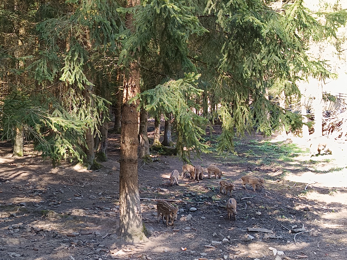 Vyplatilo se to, neboť přiběhlo 8 ještě pruhovaných selátek. Vysypali jsme jim žaludy, které jsme na pozdim pro ně nasbírali. ![]()