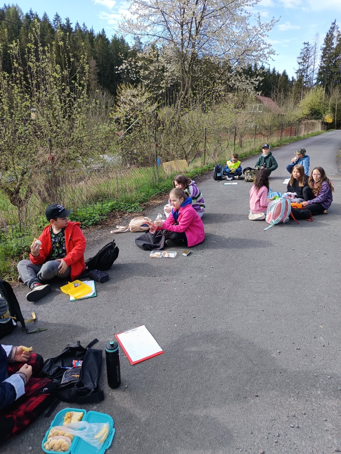 Pracovali jsme ve dvojicích, které se během dne několikrát obměnily. Cestou na Pančavu jsme třídili přírodniny, které jsme viděli okolo sebe, na živou a neživou přírodu. Dbali jsme také na bezpečnost. Písař šel u krajnice, hlídač šel vedle něj a hlídal písaře, aby nevybočil příliš do vozovky.