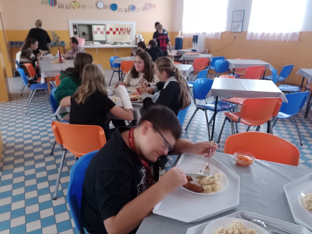 Děti si k obědu vybraly miniřízečky s bramborovým salátem. Společný oběd byl hezký závěr týdne.